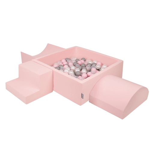 KiddyMoon Foam Playground for Kids with Square Ballpit ( ∅ 7cm/2.75In) Soft Obstacles Course and Ball Pool, Certified Made In The EU, pink:pearl/grey/transparent/powder pink, Ballpit (200 Balls) + Version 6