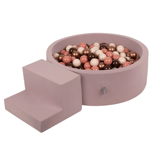 KiddyMoon Foam Playground for Kids with Round Ballpit (200 Balls ∅ 7cm/2.75In) Soft Obstacles Course and Ball Pool, Certified Made In The EU, heather: brown/copper/pastel beige/salmon, Ballpit (100 Balls) + Steps
