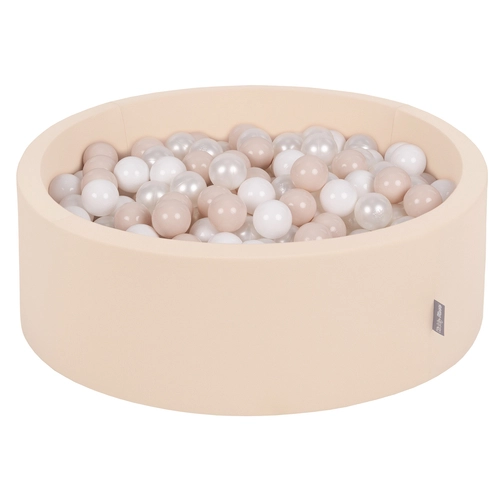 KiddyMoon Baby Foam Ball Pit with Balls ∅ 7cm / 2.75in, beige: pastel beige/white/pearl, 90x30cm/200 balls
