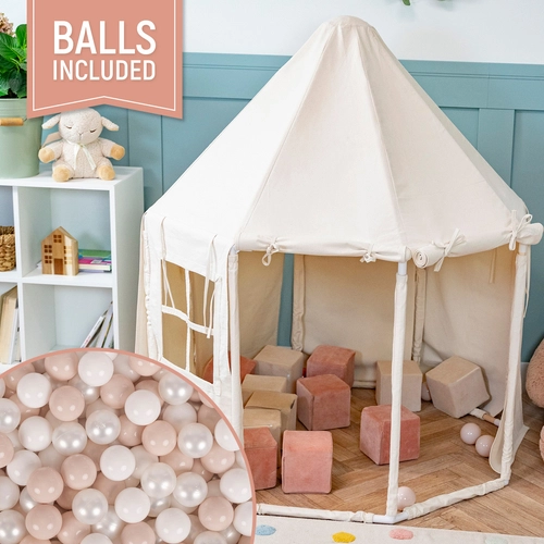 KiddyMoon Play Tent for Kids Pavilion Playhouse Cotton Fabric Indoor Outdoor Use Foldable Design Easy Assembly And Storage Perfect For Play Relaxing And Imaginative Adventures, natural: pastel beige/white/pearl, 700 Balls