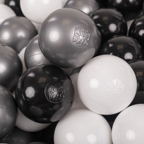KiddyMoon Soft Plastic Play Balls ∅ 7cm/2.75in Multi-colour Made in EU, white/black/silver, 100 Balls/7cm-2.75in