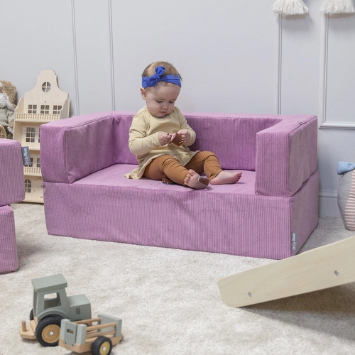 KiddyMoon Children's Foam Sofa with Two Poufs For Kids Comfortable and Lightweight Playroom Set Ribbed Fabric Removable Covers Perfect for Rest and Creative Play, Purple, Sofa/Pouf