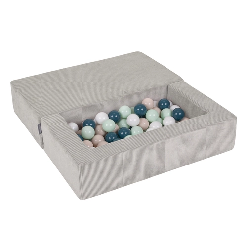 KiddyMoon Modular Foam Sofa for Children's with Balls Lightweight Sofa For Kids Room Comfortable Space-Saving with Storage Room Fabric Safe and Fun for Kids, light gray: dark turquoise/pastel beige/white/mint, Sofa + 100 Balls