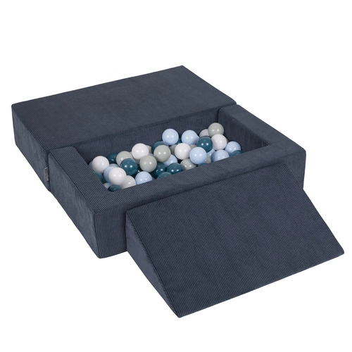 KiddyMoon Children's Foam Sofa with Wedge and Play Balls Set for Play Soft Perfect for Kids Room Lightweight Learning Relaxation Removable Covers Easy Cleaning, navy blue: dark turquoise/green-gray/pastel blue/white, Sofa/Wedge + 100 Balls