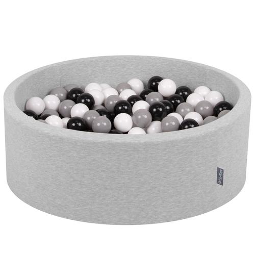 KiddyMoon Baby Foam Ball Pit with Balls ∅ 7cm / 2.75in Made in EU, light grey:white/black/grey, 90x30cm/300 balls