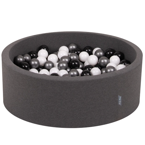 KiddyMoon Baby Foam Ball Pit with Balls ∅ 7cm / 2.75in Made in EU, dark grey:white/black/silver, 90x30cm/300 balls