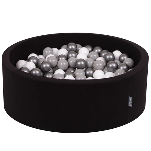 KiddyMoon Baby Foam Ball Pit with Balls ∅ 7cm / 2.75in Made in EU, black:white/grey/silver, 90x30cm/300 balls