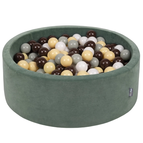 KiddyMoon Soft Ball Pit Round ∅ 7cm / 2.75In for Kids, Foam Velvet Ball Pool Baby Playballs, Made In The EU, forest green:greengrey/pastel yellow/brown/white, 90x30cm/300 balls