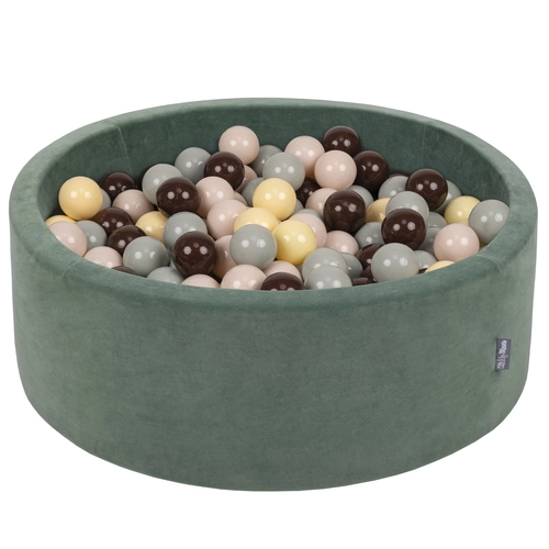 KiddyMoon Soft Ball Pit Round ∅ 7cm / 2.75In for Kids, Foam Velvet Ball Pool Baby Playballs, Made In The EU, forest green:pastel beige/greengrey/pastel yellow/brown, 90x30cm/300 balls
