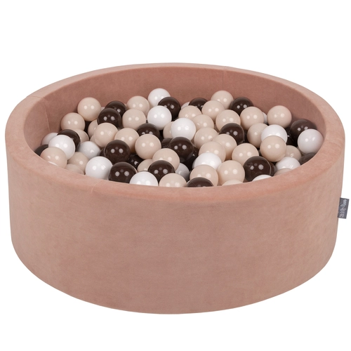KiddyMoon Soft Ball Pit Round ∅ 7cm / 2.75In for Kids, Foam Velvet Ball Pool Baby Playballs, Made In The EU, desert pink:pastel beige/brown/white, 90x30cm/300 balls