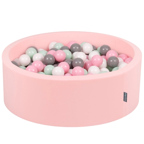 KiddyMoon Baby Foam Ball Pit with Balls ∅ 7cm / 2.75in Made in EU, pink:white/grey/mint/powder pink, 90x30cm/300 balls