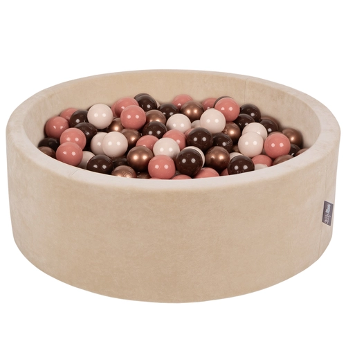 KiddyMoon Soft Ball Pit Round 7cm / 2.75In for Kids, Foam Velvet Ball Pool Baby Playballs, sand beige:brown/copper/pastel beige/salmon pink, 90x30cm/300 balls