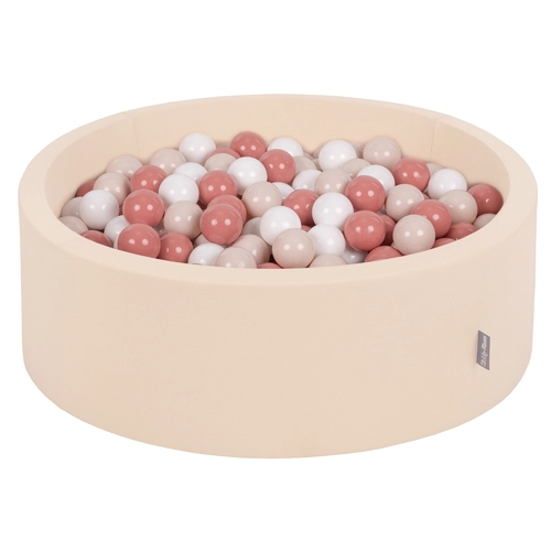 KiddyMoon Baby Foam Ball Pit with Balls ∅ 7cm / 2.75in, beige: pastel beige/ salmon/white, 90x30cm/300 balls