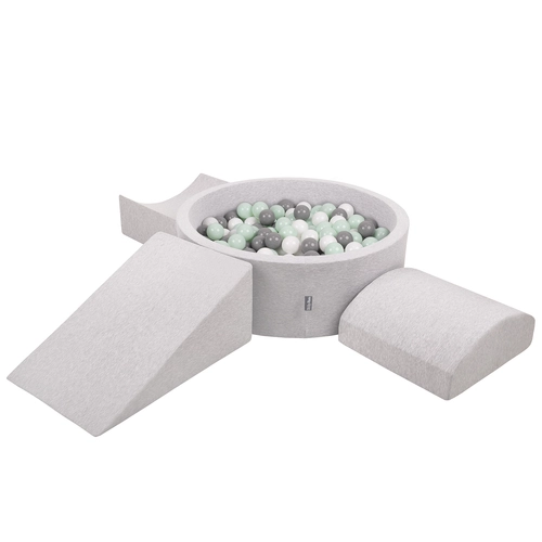 KiddyMoon Foam Playground for Kids with Round Ballpit ( ∅ 7cm/2.75In) Soft Obstacles Course and Ball Pool, Certified Made In The EU, lightgrey:white/grey/mint, Ballpit (300 Balls) + Version 4
