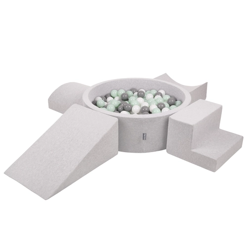 KiddyMoon Foam Playground for Kids with Round Ballpit ( ∅ 7cm/2.75In) Soft Obstacles Course and Ball Pool, Certified Made In The EU, lightgrey:white/grey/mint, Ballpit (300 Balls) + Version 5