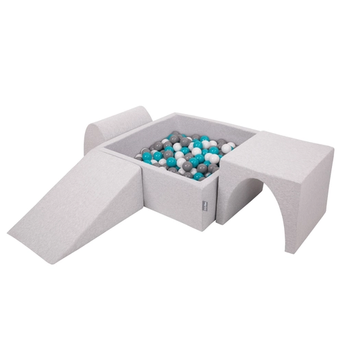 KiddyMoon Foam Playground for Kids with Square Ballpit ( ∅ 7cm/2.75In) Soft Obstacles Course and Ball Pool, Certified Made In The EU, lightgrey:grey/white/turquoise, Ballpit (200 Balls) + Version 2