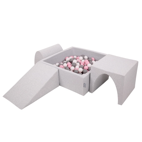 KiddyMoon Foam Playground for Kids with Square Ballpit ( ∅ 7cm/2.75In) Soft Obstacles Course and Ball Pool, Certified Made In The EU, lightgrey:white/grey/powderpink, Ballpit (300 Balls) + Version 2