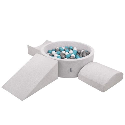 KiddyMoon Foam Playground for Kids with Round Ballpit ( ∅ 7cm/2.75In) Soft Obstacles Course and Ball Pool, Certified Made In The EU, lightgrey:grey/white/turquoise, Ballpit (300 Balls) + Version 4