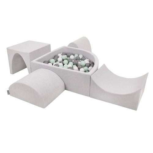 KiddyMoon Foam Playground for Kids with Quarter Angular Ballpit and Balls, lightgrey:white/grey/mint, Ballpit (300 Balls) + Version 1
