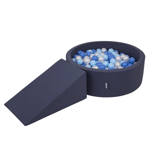 KiddyMoon Foam Playground for Kids with Round Ballpit ( ∅ 7cm/2.75In) Soft Obstacles Course and Ball Pool, Certified Made In The EU, darkblue:babyblue/blue/pearl, Ballpit (200 Balls) + Wedge