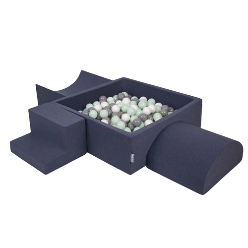 KiddyMoon Foam Playground for Kids with Square Ballpit ( ∅ 7cm/2.75In) Soft Obstacles Course and Ball Pool, Certified Made In The EU, darkblue:white/grey/mint, Ballpit (300 Balls) + Version 6