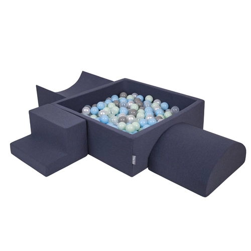 KiddyMoon Foam Playground for Kids with Square Ballpit ( ∅ 7cm/2.75In) Soft Obstacles Course and Ball Pool, Certified Made In The EU, darkblue:pearl/grey/transparent/babyblue/mint, Ballpit (300 Balls) + Version 6