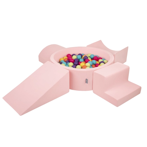 KiddyMoon Foam Playground for Kids with Round Ballpit ( ∅ 7cm/2.75In) Soft Obstacles Course and Ball Pool, Certified Made In The EU, pink:lgreen/yellow/turquoise/orange/dpink/purple, Ballpit (300 Balls) + Version 5