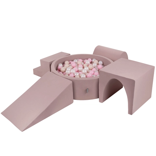 KiddyMoon Foam Playground for Kids with Round Ballpit ( ∅ 7cm/2.75In) Soft Obstacles Course and Ball Pool, Certified Made In The EU, heather: pastel beige/powder pink/pearl, Ballpit (200 Balls) + Version 3