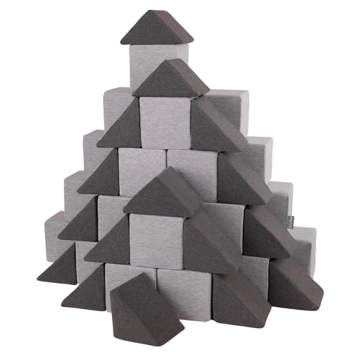 KiddyMoon Soft Foam Cubes Building Blocks 14cm for Children Multifunctional Foam Construction Montessori Toy for Babies, Certified Made in The EU, mix: light grey-dark grey, 48 Pieces