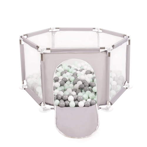 hexagon 6 side play pen with plastic balls, Grey:white/grey/mint, 900 balls