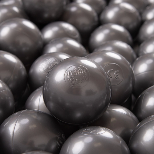 KiddyMoon Soft Plastic Play Balls ∅ 7cm/2.75in Mono-colour certified Made in EU, silver, 200 Balls/7cm-2.75in
