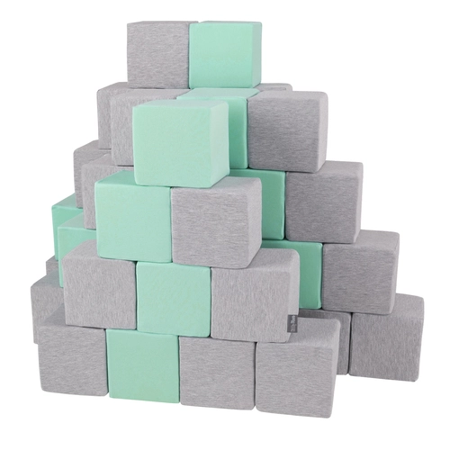 KiddyMoon Soft Foam Cubes Building Blocks 14cm for Children Multifunctional Foam Construction Montessori Toy for Babies, Certified Made in The EU, cubes:light grey-mint, 48 Pieces