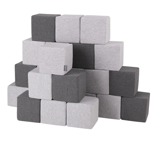 KiddyMoon Soft Foam Cubes Building Blocks 14cm for Children Multifunctional Foam Construction Montessori Toy for Babies, Certified Made in The EU, cubes:dark grey-light grey, 24 Pieces