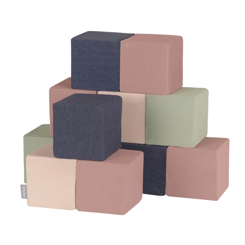 KiddyMoon Soft Foam Cubes Building Blocks 14cm for Children Multifunctional Foam Construction Montessori Toy for Babies, Certified Made in The EU, cubes: heather-dark blue-beige-sage, 12 Pieces