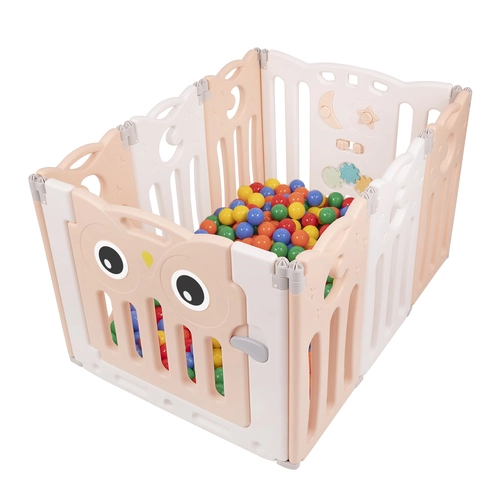 Playpen Box Foldable for Children with Plastic Colourful Balls, white-pink:yellow/green/blue/red/orange, 6 + 2 Panels/100 Balls