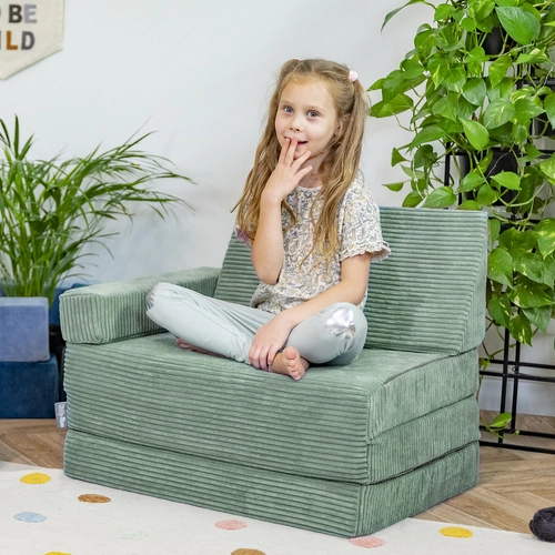 KiddyMoon Armchair Kids Foldable Children Multifunctional Foam Mattress Sofa Bed Folding Toddler Couch Chair for Playroom Bedroom Living Room, green, Armchair with Pillow