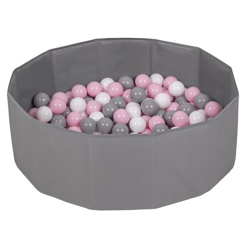 children colourfull foldable ballpit plastic balls, gray:white/gray/powder pink, 300 balls