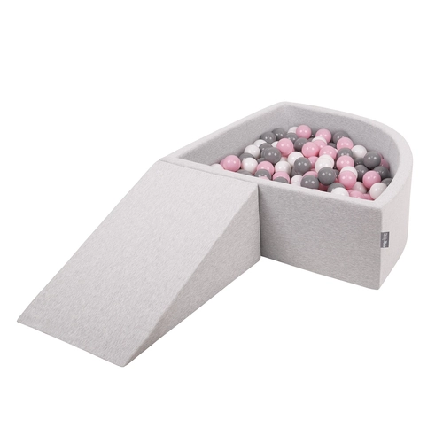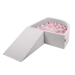 KiddyMoon Foam Playground for Kids with Quarter Angular Ballpit and Balls, lightgrey:powderpink/pearl/transparent, Ballpit (100 Balls) + Wedge