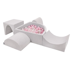 KiddyMoon Foam Playground for Kids with Quarter Angular Ballpit and Balls, lightgrey:pearl/grey/transparent/babyblue/mint, Ballpit (200 Balls) + Version 1