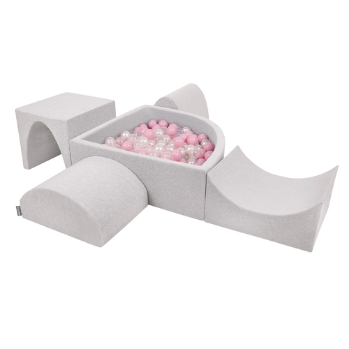 KiddyMoon Foam Playground for Kids with Quarter Angular Ballpit and Balls, lightgrey:powderpink/pearl/transparent, Ballpit (200 Balls) + Version 1