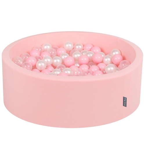 KiddyMoon Baby Foam Ball Pit with Balls β 7cm / 2.75in Made in EU, pink:pearl/grey/transparent/light pink, 90x30cm/200 balls