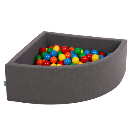 KiddyMoon Soft Ball Pit Quarter Angular β 7cm / 2.75In for Kids, Foam Ball Pool Baby Playballs, Made In The EU, light grey:white/grey/mint, 90x30cm/200 balls