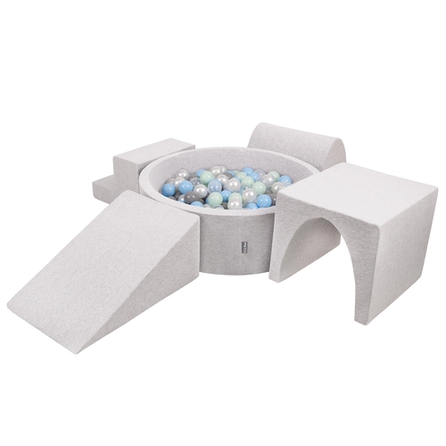 KiddyMoon Foam Playground for Kids with Round Ballpit ( ∅ 7cm/2.75In) Soft Obstacles Course and Ball Pool, Certified Made In The EU, pink:powder pink/pearl/transparent, Ballpit (200 Balls) + Version 3