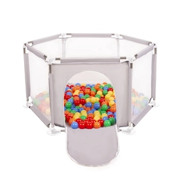 hexagon 6 side play pen with plastic balls, Grey:white/grey/mint, 100 balls